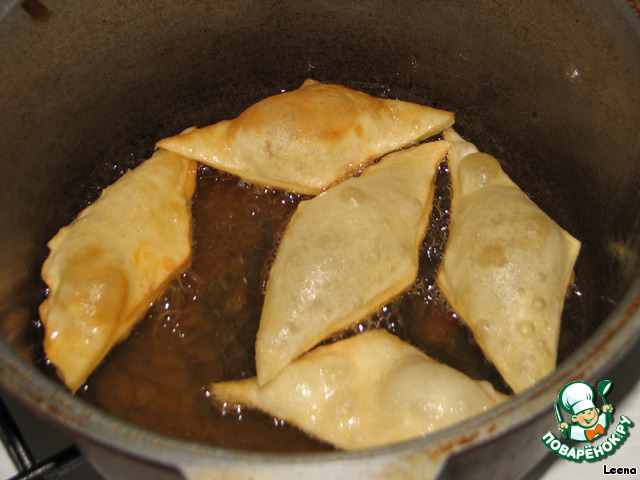 Каждую часть раскатать довольно тонко, почти как на вареники. Лепешку формируем овально. Тесто не липнет к столу, можно даже не подсыпать муку. Чем меньше муки при раскатывании, тем реже придется менять масло.