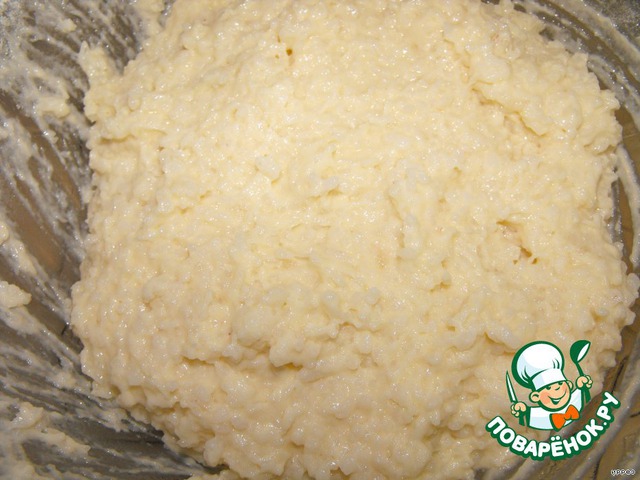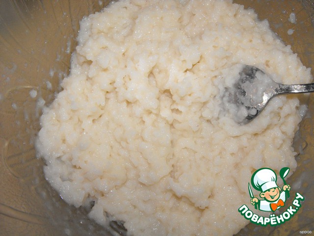Дрожжи растворить в теплом молоке, добавить сахар и смешать с рисом.
