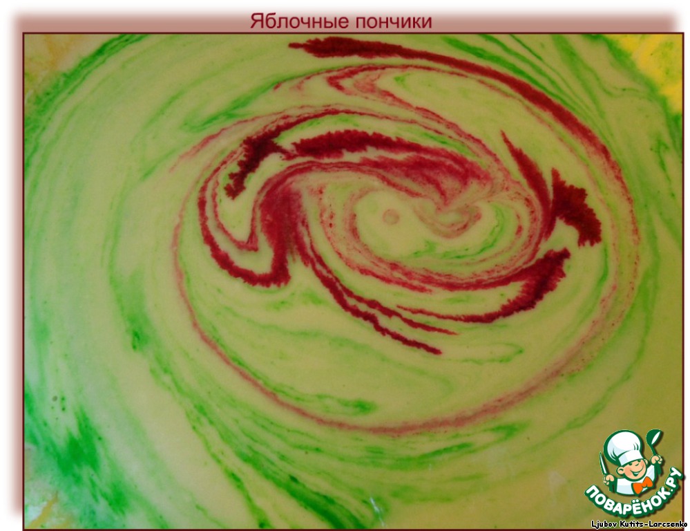 Отдельно смешать кефир, воду, яйцо и ванильную эссенцию (тут я решила позаниматься немного живописью, потому что ванильной эссенции у меня дома не нашлось в этот раз, поэтому на фото - яблочная и ещё какая-то экзотическая...чисто для живописи.. :-)
