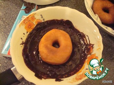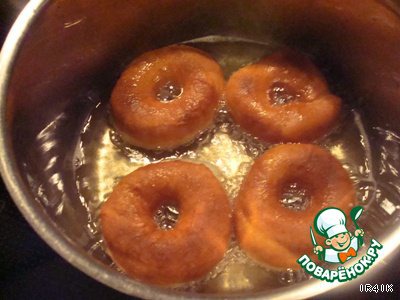 после того как тесто подойдет обмять его и раскатать в пласт 1 см. стаканом диаметр 6-7 см. вырезать пончики в центре пробкой от бутылки удалить центр.