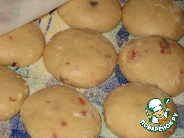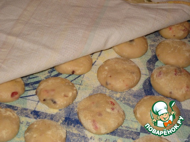 От теста отщипывать небольшие кусочки. Скатывать их в ровные шарики, чуть приплюснуть и выложить на стол или доску присыпанную манкой (кукурузной мукой) на расстоянии 2 см друг от друга, т.к. они буду расти и должно быть место, чтобы не слиплись.