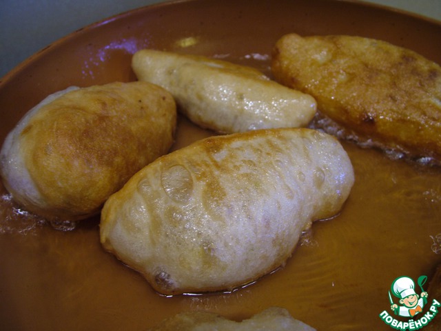 На средне-сильном огне жарим наши пирожки в масле (1-2 см масла) с двух сторон, а какие-то и с трёх-четырех, чтобы они были обжарены равномерно.