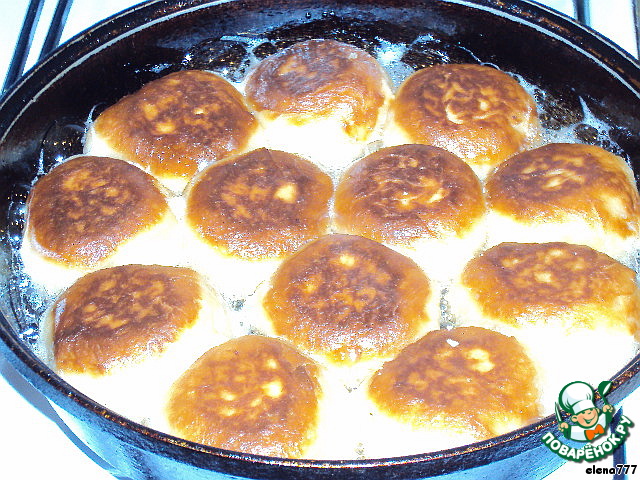 Обжарить шарики с обеих сторон на разогретом растительном масле, на не слишком сильном огне, чтобы пончики хорошо прожарились и были пышными. При жарке сковороду накрывать крышкой.