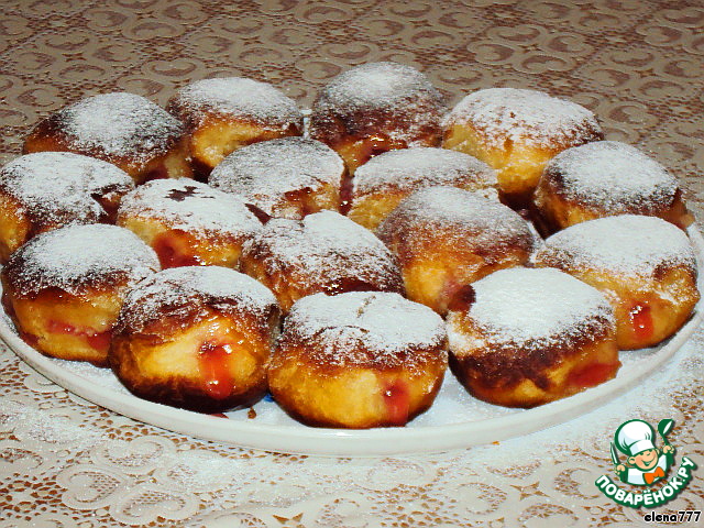 Посыпать берлинеры сахарной пудрой и можно пить чай!