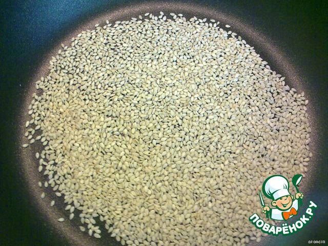 Кунжут обжарить на сухой сковороде, помешивая в течение минуты, остудить