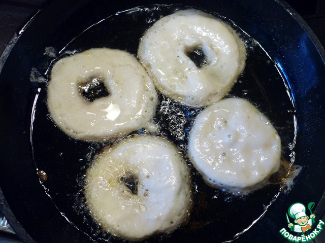 Готовые пончики выложить на бумажное полотенце, чтобы впитался лишний жир.