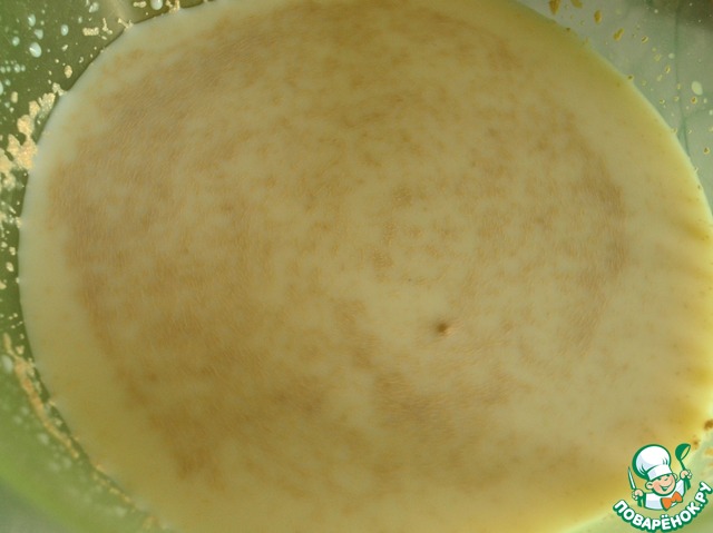 Дрожжи развести в теплом молоке, добавить сахар, соль, 300 г муки, перемешать и поставить в тепло на 1 час.