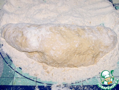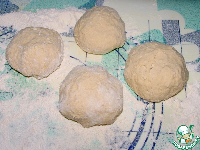 Тесто хорошо вымешать руками и разделить на четыре части.