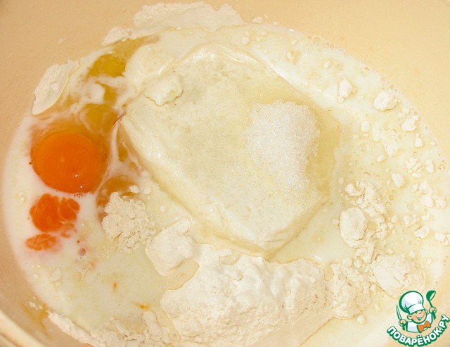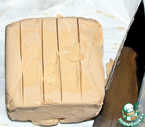 Дрожжи, 50 г пачка. Я поделила её на пять частей и одной частью воспользовалась.