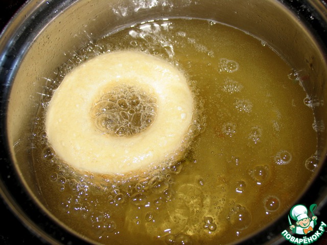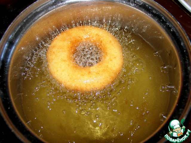 Каждая сторона пончика жарилась - кипела в масле по 1, 5 минуты и меньше.