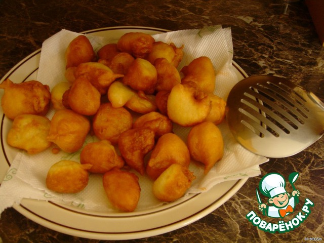 Выложите лукумадес на салфетку, и выкладывайте следующую порцию лукумадес.