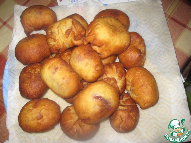 Жарим пончики во фритюре на очень медленном огне. Выкладываем на салфетку, чтобы стек лишний жир.