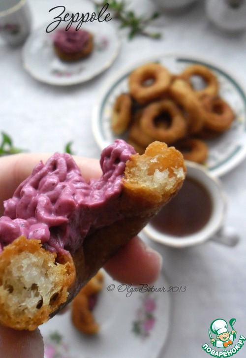 | Зепполе (Zeppole) - это итальянские кондитерские изделия, представляющие собой обжаренные во фритюре шарики теста. Они могут быть покрыты, как кремом или сиропом, так и просто обсыпаны сахарной пудрой. Существует множество рецептов этого лакомства. Их готовят из дрожжевого или заварного теста. Обычно эти пончики готовятся во время празднования дня Святого Джузеппе (La Festa di San Giuseppe) В этот день продается великое множество Зепполе. Также они могут быть преподнесены в качестве подарка. Я готовила пончики из наипростейшего заварного теста, которое требует минимального набора продуктов. |