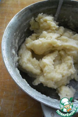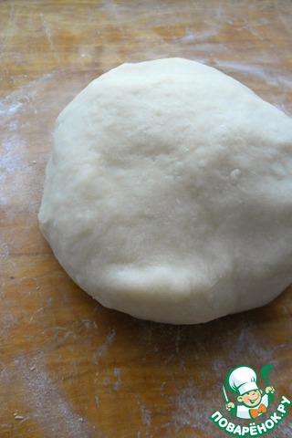 Как только тесто собралось в комок, его следует выложить на припыленную мукой поверхность и немного вымесить. Тесто очень эластичное и послушное, так что проблем возникнуть не должно. Но будьте осторожны, так как оно горячее.