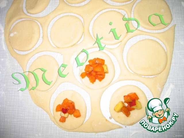 Слегка растягивая тесто, слепить из кружочков пельмешки, хорошо защипывая край, иначе начинка, в процессе жарки, будет выпадать.