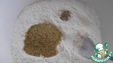 Кардамон сначала необходимо подготовить: растолочь и убрать шелуху. Затем смешать его с мукой, сахаром и пекарским порошком.