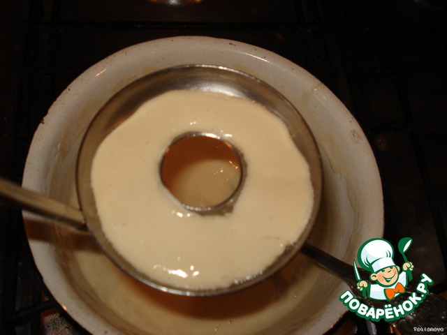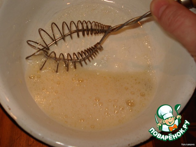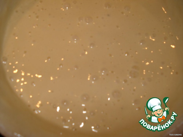 Замесить пузырчатое тесто густоты средней, почти на оладьи, чуть пожиже