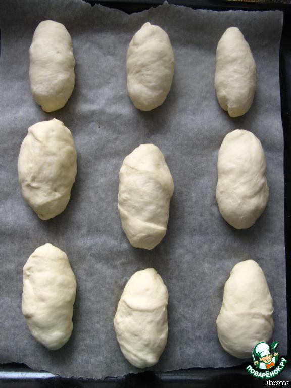 Выкладываем булочки на застеленный бумагой для выпечки противень.