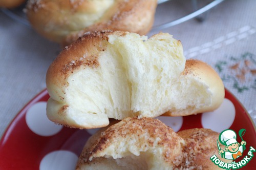 Смешайте корицу с сахаром и посыпьте сверху на булочки.