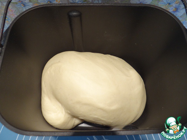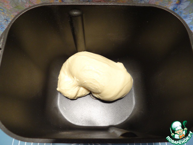 Помещаем ведерко в хлебопечку и включаем режим замеса теста. Даем тесту в теплом месте увеличиться в объеме в 2-3 раза.
