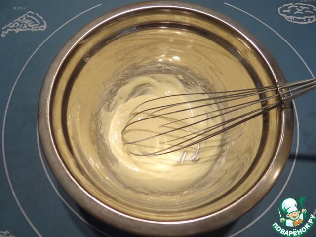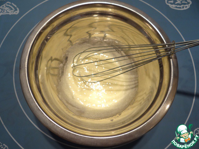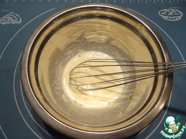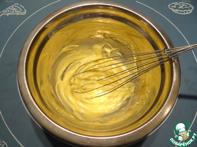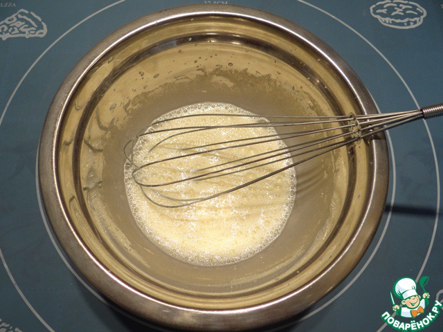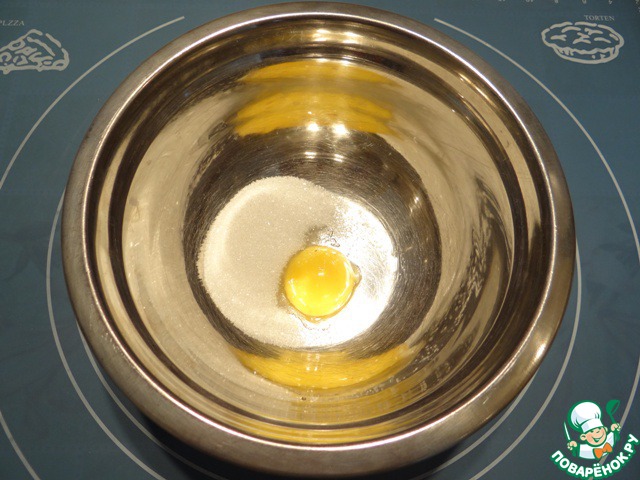 Венчиком взбиваем желток и сахар до получения белой пышной массы.
