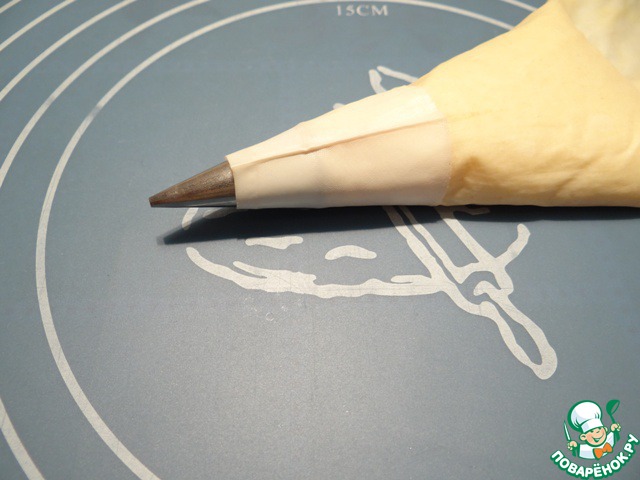 Заварной крем перекладываем в кондитерский мешок или шприц с насадкой с круглым отверствием.