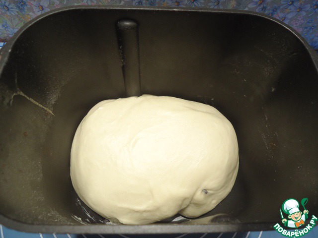 Помещаем ведерко в хлебопечку и включаем режим замеса.