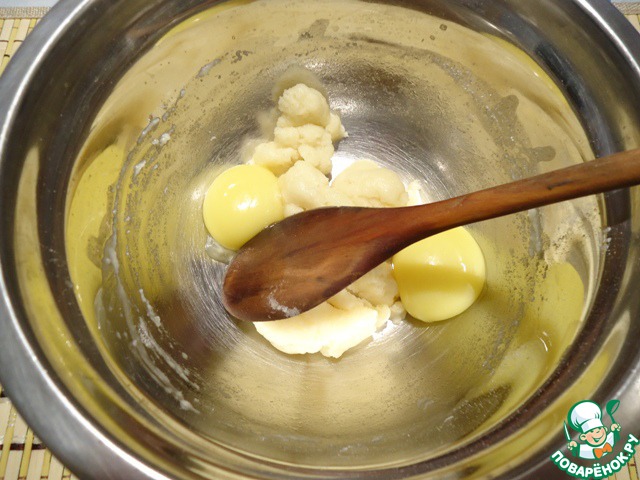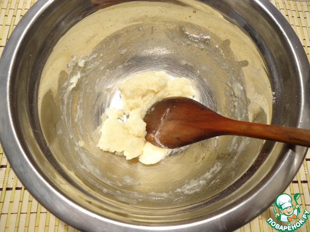 Когда сливочное масло растопится, добавляем просеянную муку, быстро замешиваем и снимаем с огня.