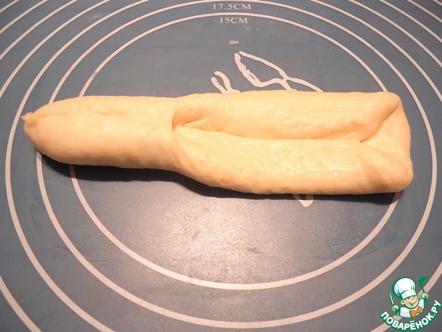 Теперь опять займемся тестом №1. Кусочек теста раскатать в прямоугольник.