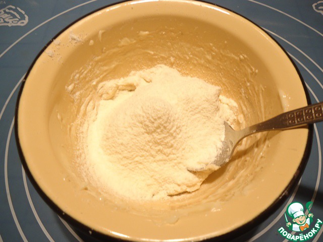Добавить к массе просеянное сухое молоко, хорошо перемешать.
