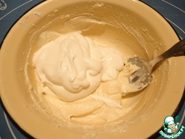 Хочу показать разницу: при приготовлении второй порции я в тесто №2 добавила 3 желтка. Тесто получилось не такое густое, как в первый раз.