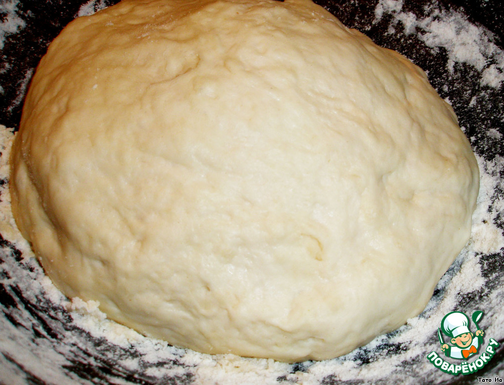 Наше тесто настоялось. Чуть обминаем, его чтобы отставало от рук.