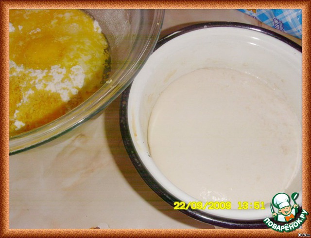 В теплое молоко всыпать дрожжи, 20 гр сахара