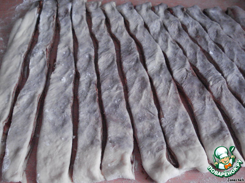 Используя резак для пиццы или ножом разрежьте на полоски 1,5 см.
