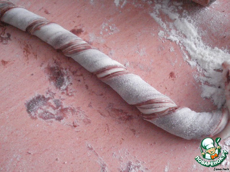 Возьмите полоску теста и поверните, чтобы получить закрученную полоску.