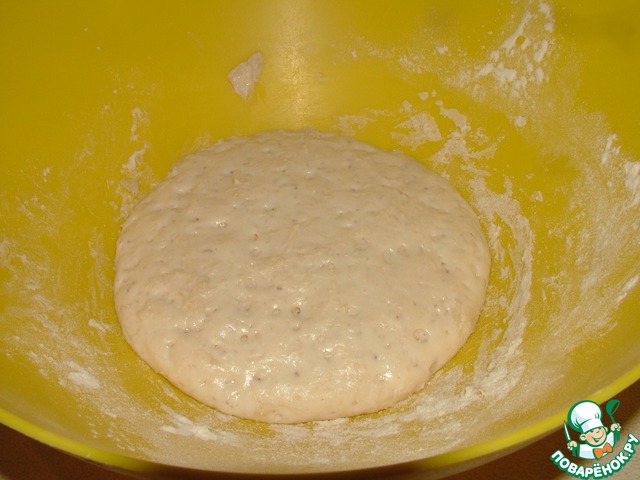 Опара: 1/8 ч. л. дрожжей, 150 г муки, 100 г воды.