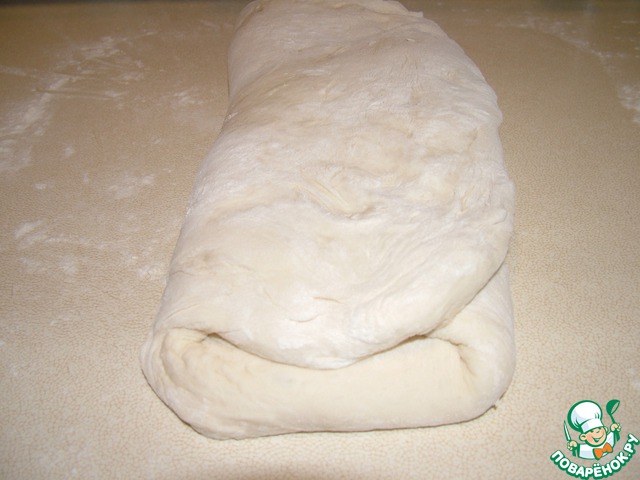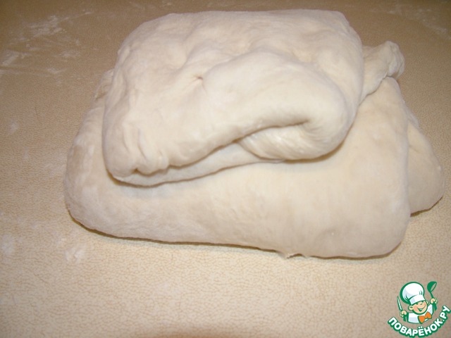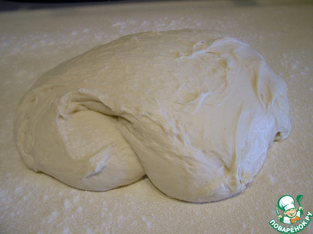 Для этого вываливаем тесто на присыпанную мукой рабочую поверхность,