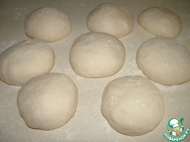 Делим тесто на 8-10 булочек. Даем им отдохнуть 20 минут.