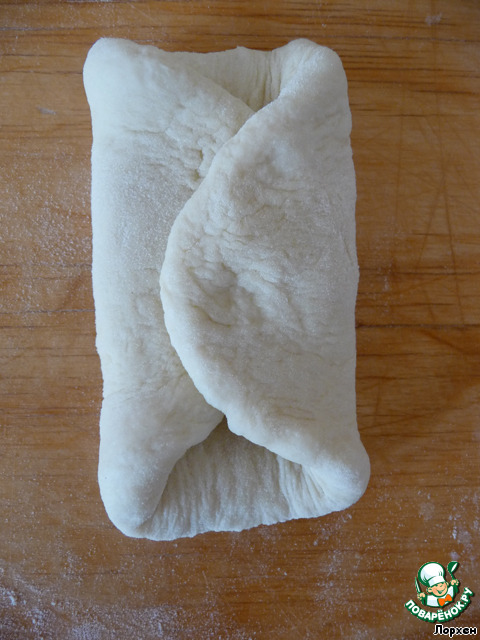 Раскатываем снова в прямоугольник и опять складываем левую часть, а затем на неё правую