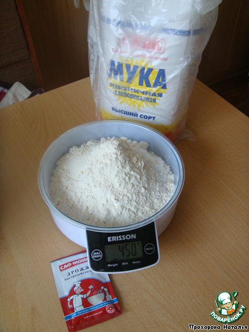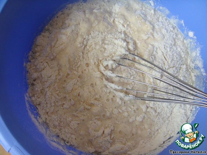 Теперь займемся тестом! В миску просеять муку, затем всыпать дрожжи, перемешать.