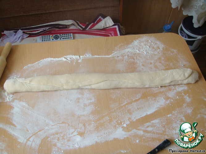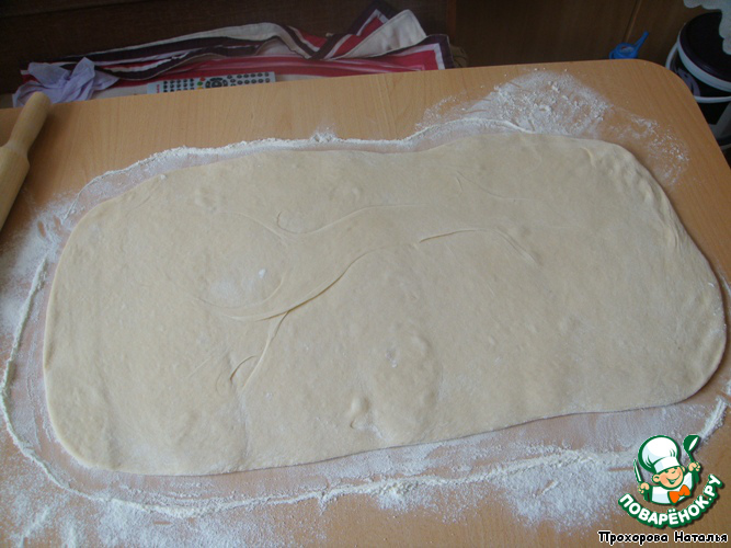 Раскатываем тесто в прямоугольник длиной 60 см.