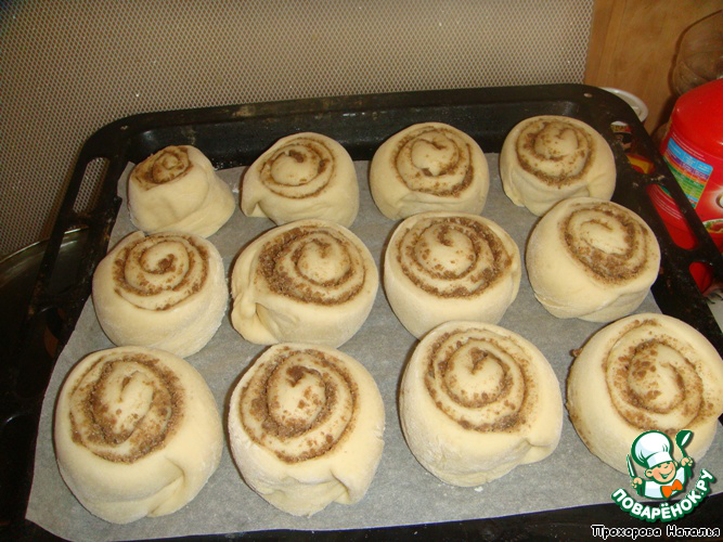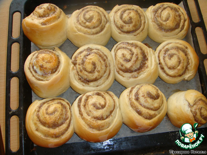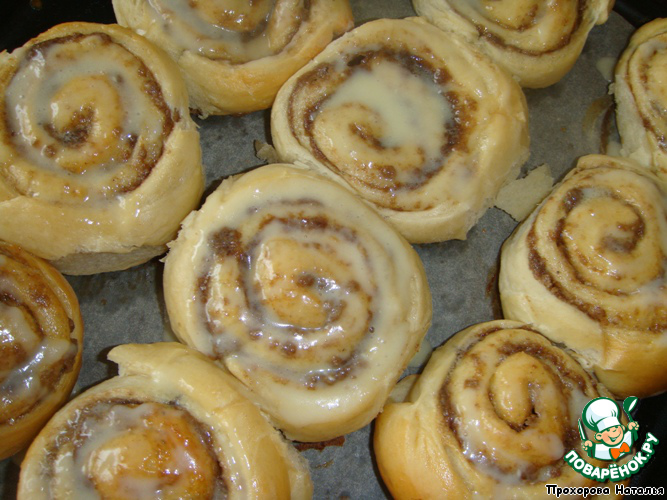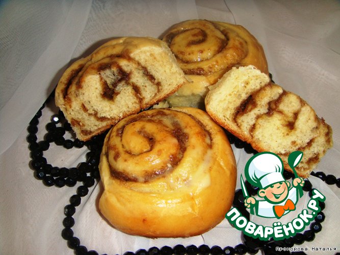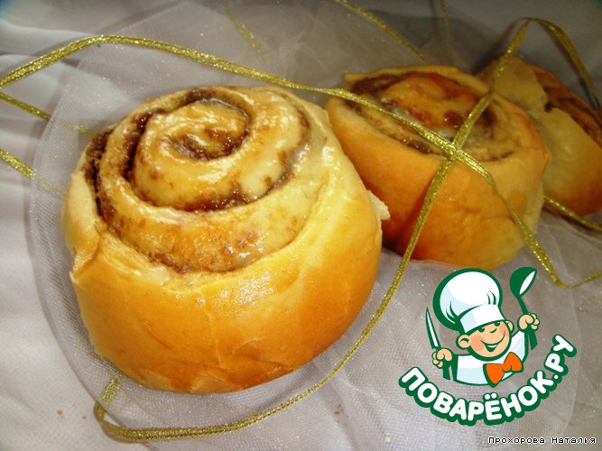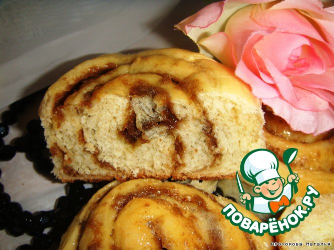 | Расскажу предысторию... Дело было перед встречей выпускников, пишет мне моя одноклассница, что купила в Ростове в торговом центре супер-булочку "Синнабон" с корицей, говорит, она такая безумно вкусная, но стоит 150 руб... Я думаю, ничего себе булочка... 150 руб. Стало интересно, что же это за булочки... Стала искать в интернете... Нашла много рецептов... Вот руки дошли, испекла! Когда искала на нашем сайте, не нашла... А сегодня вот обнаружила в исполнении Нины-супербабушки. Но мой рецепт отличается и способом приготовления (тесто поднимается за 20 минут!!!) и немного даже ингредиентами, поэтому все же осмелюсь выложить... |
