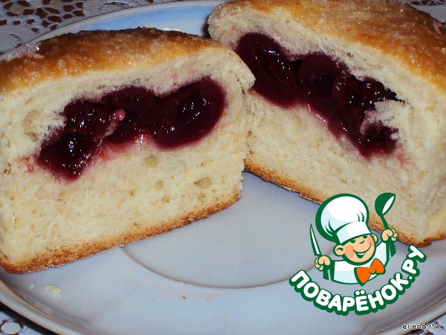 | Сдобные, ароматные, очень нежные булочки с желейной вишнeвой начинкой. Попробуйте, не пожалеете! Булочки такие вкусные, что оторваться невозможно! Только предупреждаю - не увлекайтесь - талия будет не в восторге! |