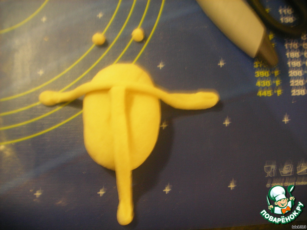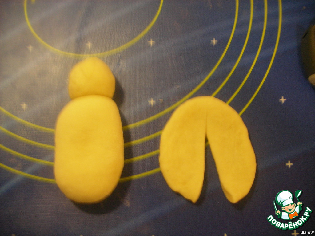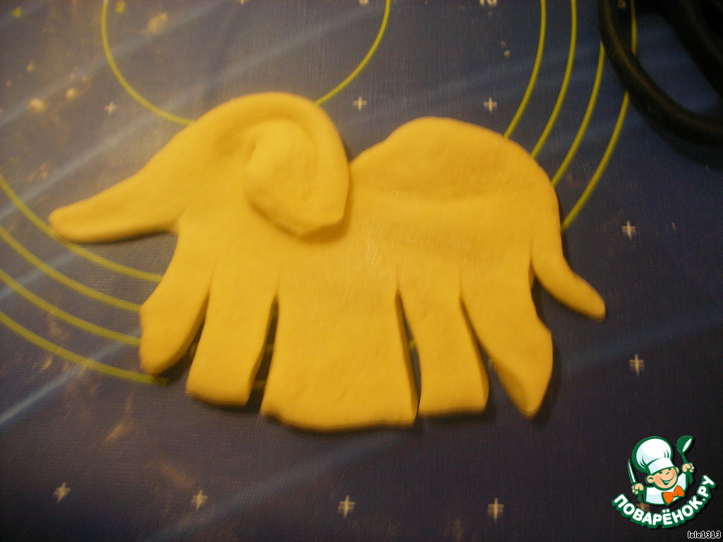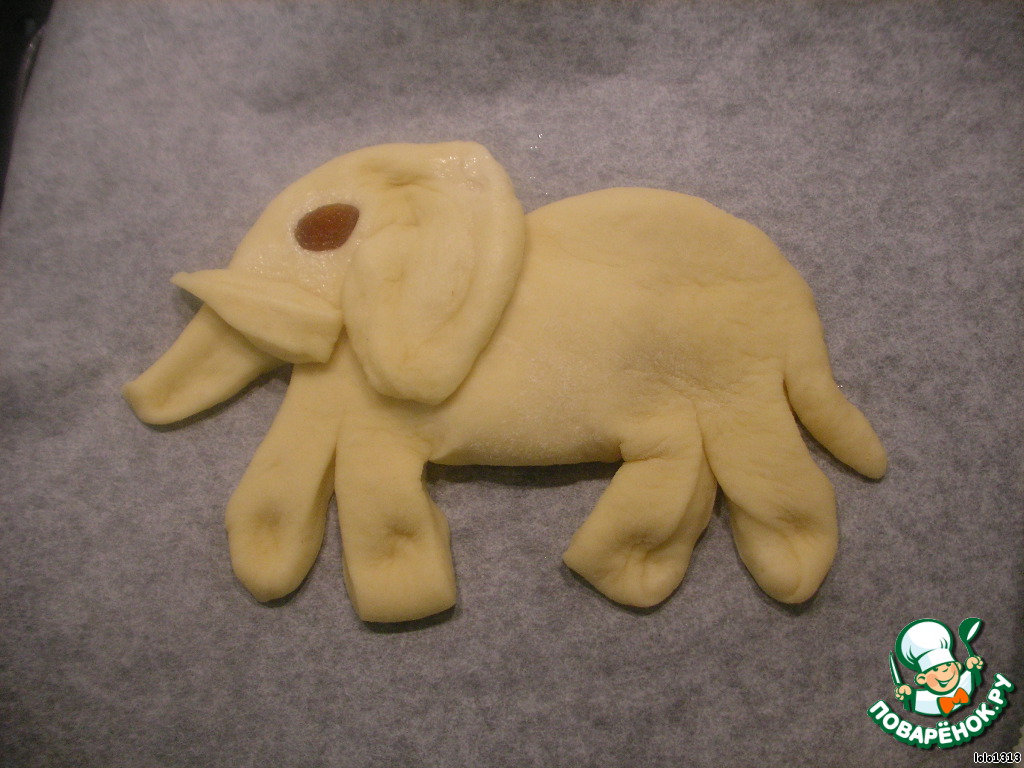 Примечание: излишек теста между ножками завернуть под туловище "слоника".