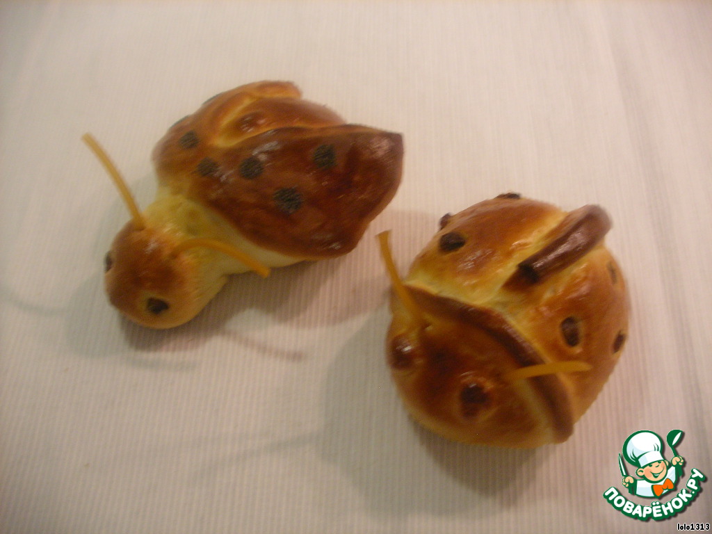 Все изделия оставить на расстойку, затем смазать взбитым с небольшим количеством воды яйцом и выпекать в предварительно разогретой духовке при Т-200*С примерно 10 минут.