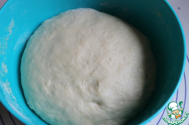 Замесим тесто, как обычно, безопарным способом, если будет мало муки, то добавте еще. Поставим в теплое место на часок примерно.