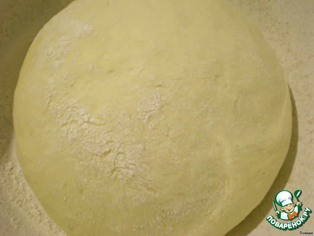 Подошедшее тесто разделить на 10 равных частей. Раскатать каждую в лепешку. Я просто распределила тесто на дощечке руками.
