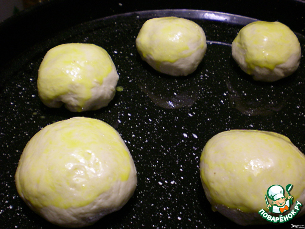 Булочки оставить на расстойку минут на 10, смазать взбитым яйцом.
