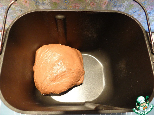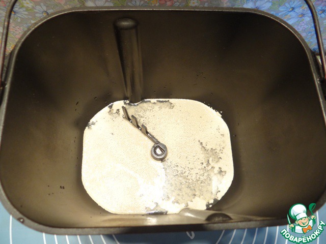 Помещаем ведерко в хлебопечку и включаем режим замеса теста.