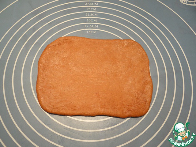 Каждый кусочек теста раскатываем в прямоугольник,